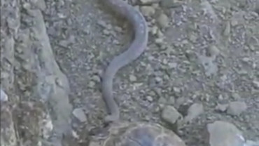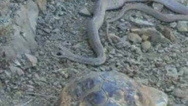 Elazığ’ da yaklaşık iki metre uzunluğunda yılan ve kaplumbağa birlikte görüntülendi.