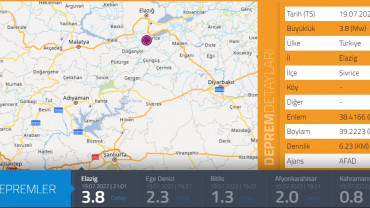 AFAD Deprem Dairesi'den alınan bilgiye göre bugün saat 21:01’de Merkez üssü Elazığ'ın Sivrice ilçesi olan 3.8 büyüklüğünde deprem meydana geldi.