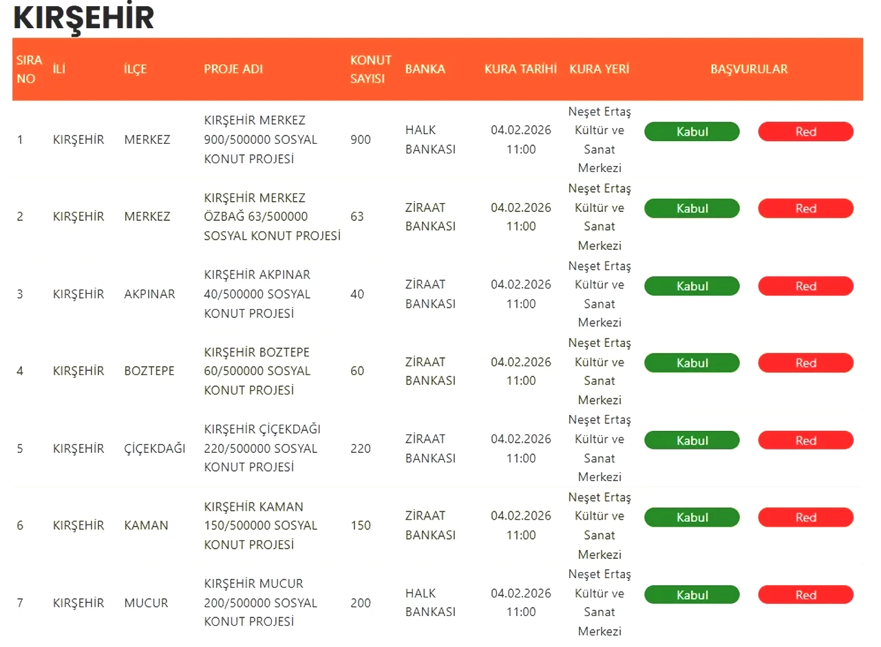 TOKİ KIRŞEHİR KURA SONUÇLARI SORGULAMA EKRANI 2026